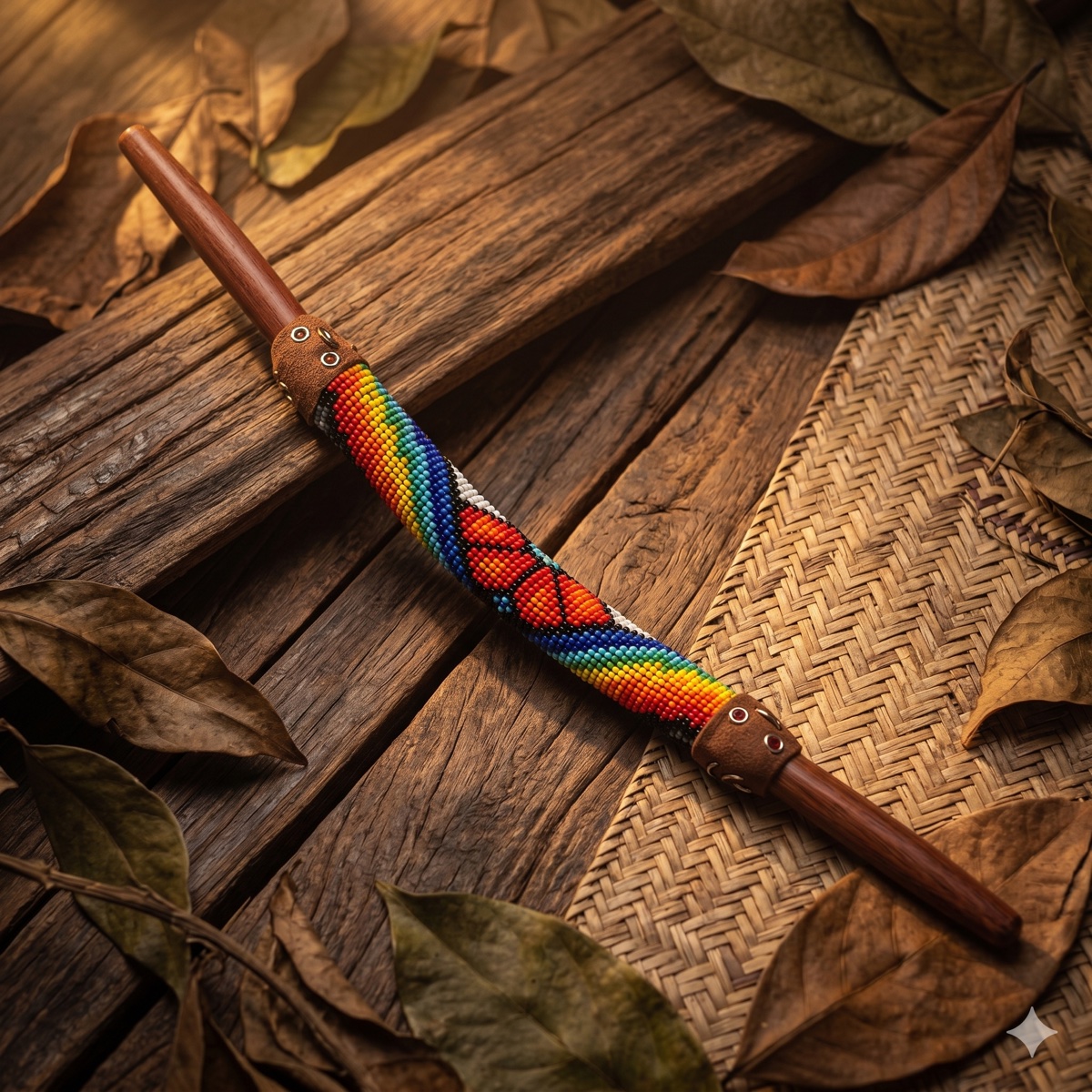 Tepi artesanal · Madera Roja · Tejido shipibo · Piedra Inka · Incluye bolso · Envío incluido